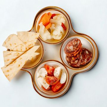 Classic Italian Aperitif with giardiniera, piadina bread, salame & Caprese.