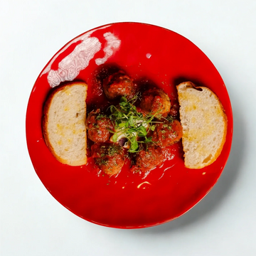 Chicken and Beef Meatballs with tomato sauce, Cherry Mozzarella, shaved parmigiano and parsley